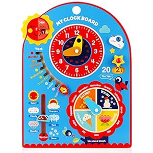 Jacootoys 8 in 1 Kids Kalender Leren Klok Houten Educatief Montessori Speelgoed voor Peuters Jongens Meisjes Kerst…