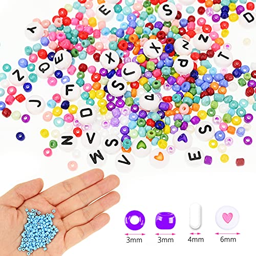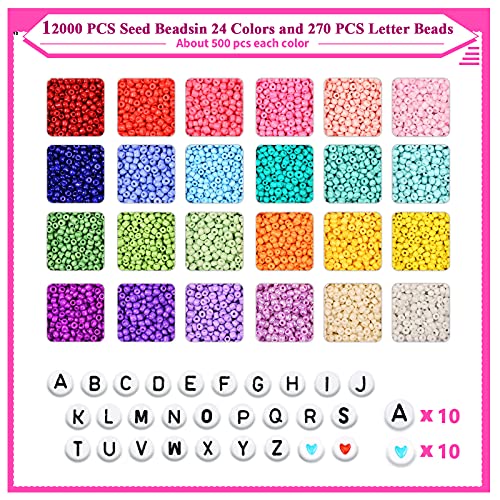 ❤ 【Pakket bevat】 Glazen rocailles set bevat meer dan 12.000 3 mm kleurrijke polymeerklei kralen met opbergdoos, 24 kleuren, 260 letter “AZ” kralen, 10 hartvormige kralen, 5 sets karabijnsluiting, 20 open ringetjes, 20 spacer kralen , 10 oogspelden, 10 oorbelhaken, 2 x 10 meter rollen elastisch koord.