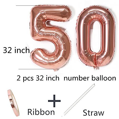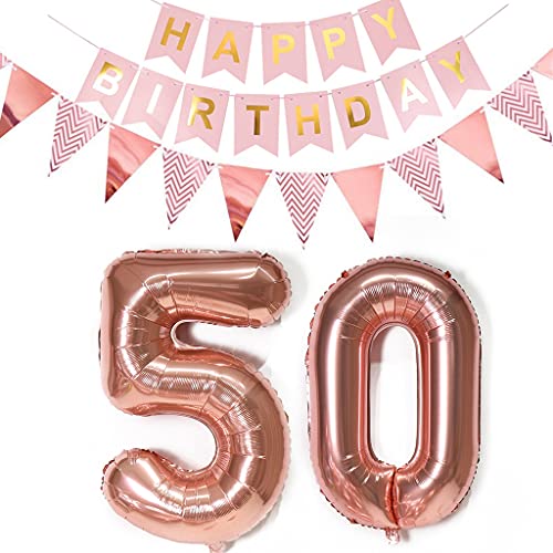 💕 Pakket bevat: 2 ballonnen van 81 cm (getal 50 grote aluminiumfolieballons), 1 roségoud, alles goed voor de verjaardag van de banner, 1 roségouden wimpels.