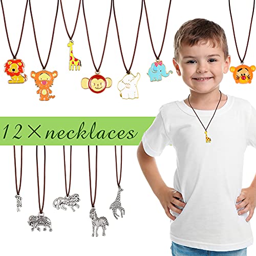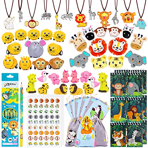 Jungle Animal Party Favors Set: 12 dierenkettingen, 12 dierengummen, 12 dierenpotloden, 6 mini-notitieblokken, 12 dierenstickers, 4 dierenbroches, 12 dierengeschenkzakjes; je kunt een groot safari-dier verjaardagsfeestje organiseren!
