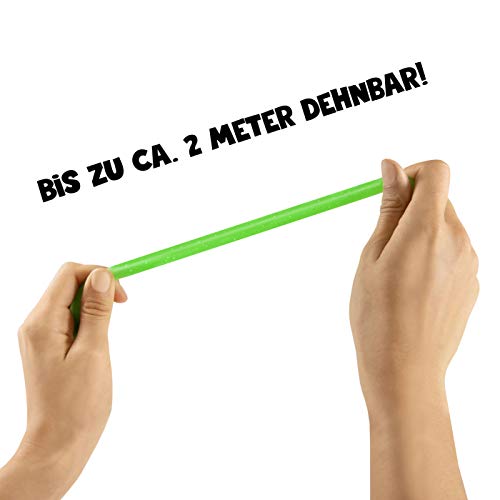 Het coolste anti-verveling lichtsnoer voor stretchen, knopen en nog veel meer. Tot ca. 2 meter rekbaar. Lengte: 30 cm Materiaal: elastische kunststof Verkrijgbaar in 6 heldere kleuren: paars, blauw, geel, oranje, groen, roze