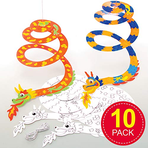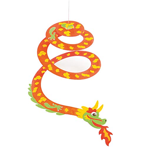 Deze mythische beestjes zullen het favoriete knutselproject zijn. Met de Baker Ross spiraalmobiel kunnen kinderen draak mobiel monteren en decoreren. Met viltstiften, decoratiestiften, kleurpotloden, glitter, stickers en nog veel meer versieren en vervolgens met het meegeleverde zilveren koord ophangen. 30 cm bij het ophangen. Geweldig voor leraren en klasprojecten, groepen, clubs en meer. Baker Ross werd in 1974 door Patti Baker opgericht. Baker Ross is nog steeds een familiebedrijf dat zich dankzij innovatieve ideeën tot een van de toonaangevende aanbieders van kunsthandwerk in Groot-Brittannië heeft ontwikkeld