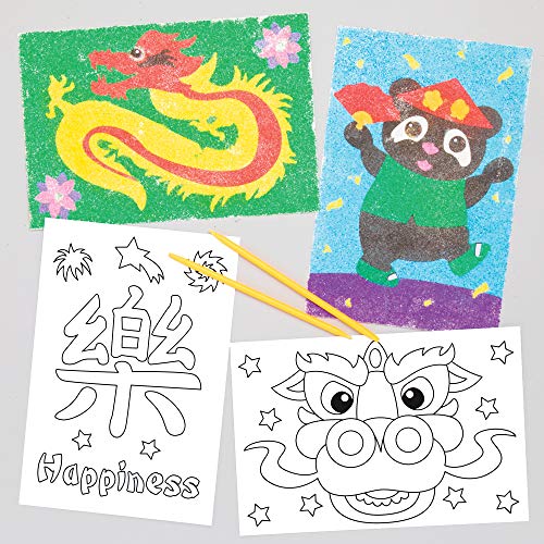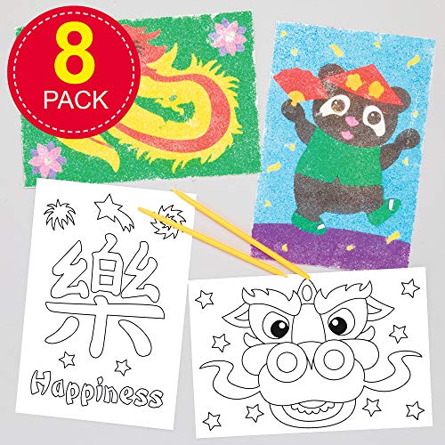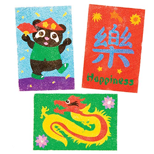 Meerdere motieven: kinderen zullen er plezier aan hebben om uit de 8 Chinese Nieuwjaar motieven te kiezen. Zand niet inbegrepen. Met gekleurd of glinsterend zand gebruiken.