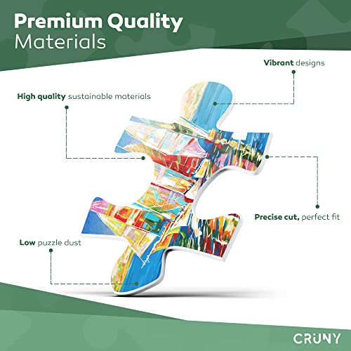 GEAVANCEERDE VOLWASSENEN: Met 1000 puzzelstukjes en een totale oppervlakte van 70 cm x 50 cm is deze decoupeerzagen 1000 stukjes voor volwassenen ideaal voor gevorderde puzzelaars, dat een beetje een uitdaging of een stap omhoog van 500 puzzels en met CRUNY krijg je precies dat met een grote verscheidenheid aan verschillende puzzelstijlen!